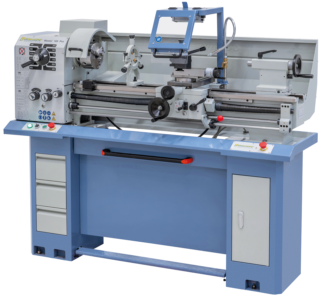 Die Universaldrehmaschine Master 165 Pro eignet sich zur Ausführung von leichten und mittelschweren Dreharbeiten. Schon die Grundausstattung beinhaltet alle wichtigen Zubehöre (3-Backenfutter, Lünetten, Wechselräder, ...) wodurch diese Maschine universell einsetzbar ist. Zur Reduzierung der Fertigungszeiten ist dieses Modell auch mit einer 3-Achs-Digitalanzeige lieferbar.
