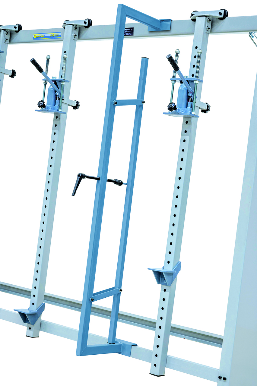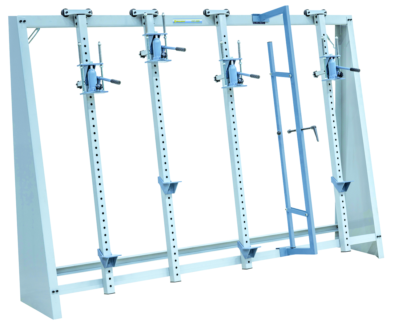 - 4 verschiebbare Druckbalken mit je einem vertikalen Handhydraulikzylinder und Gegenbock